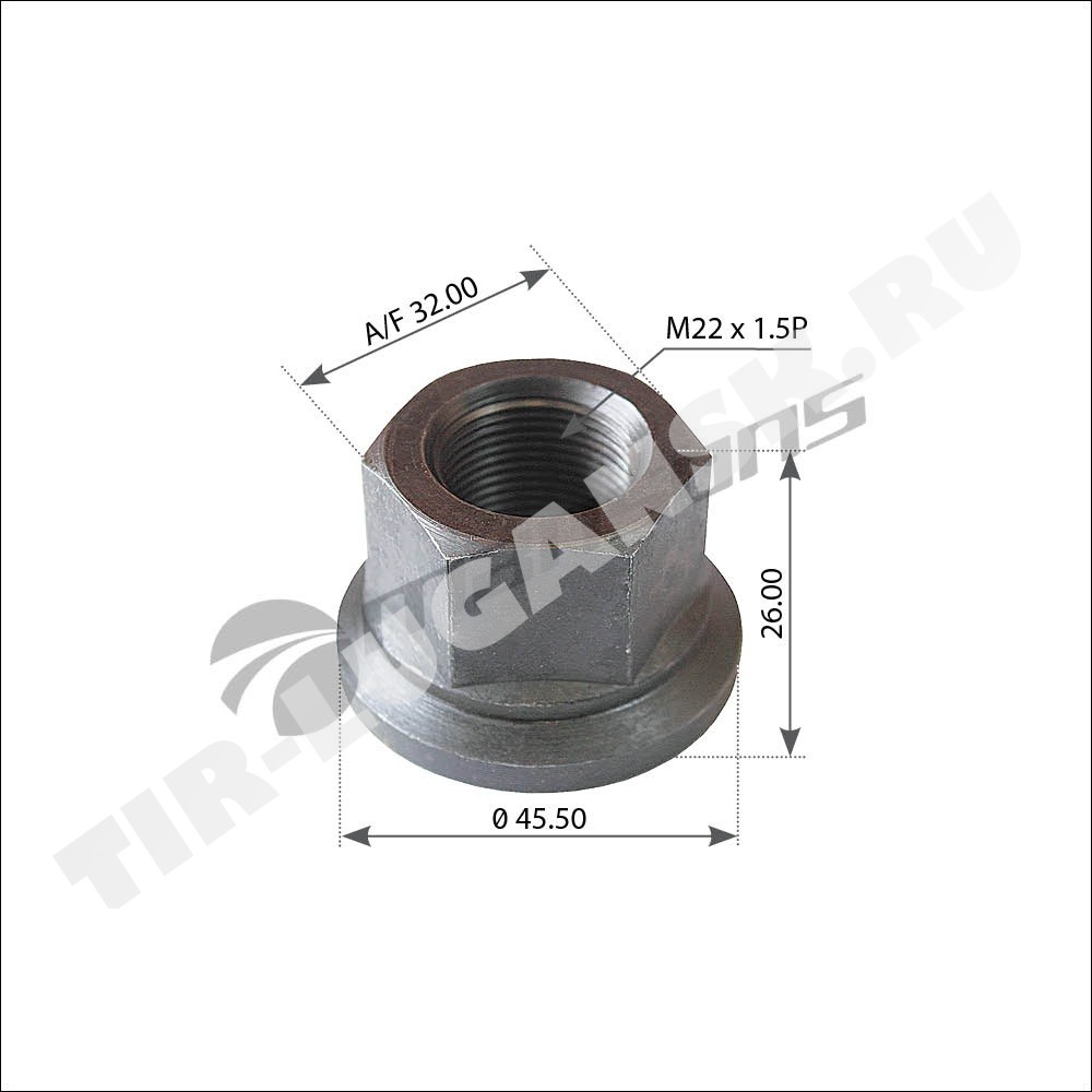 Гайка М22*1.5 колеса с юбкой SW32 H=27
