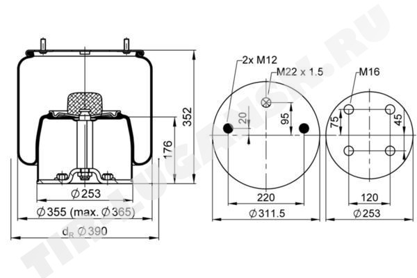 Пневморессора со стаканом (сталь)