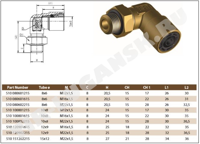 Соединитель уголок М16*1,5/D8 латунь