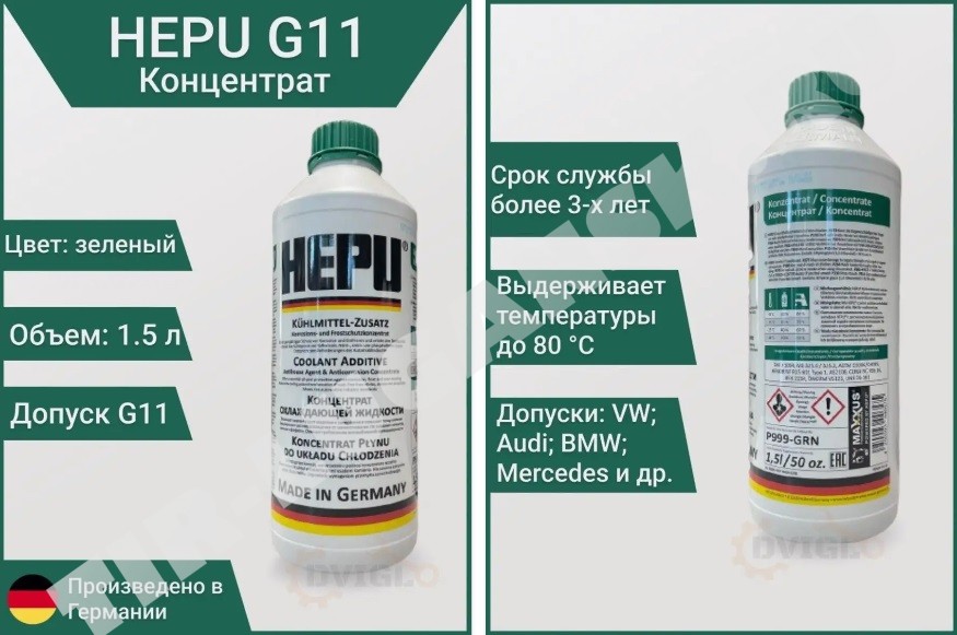 Антифриз концентрат HEPU 1.5л зеленый G11